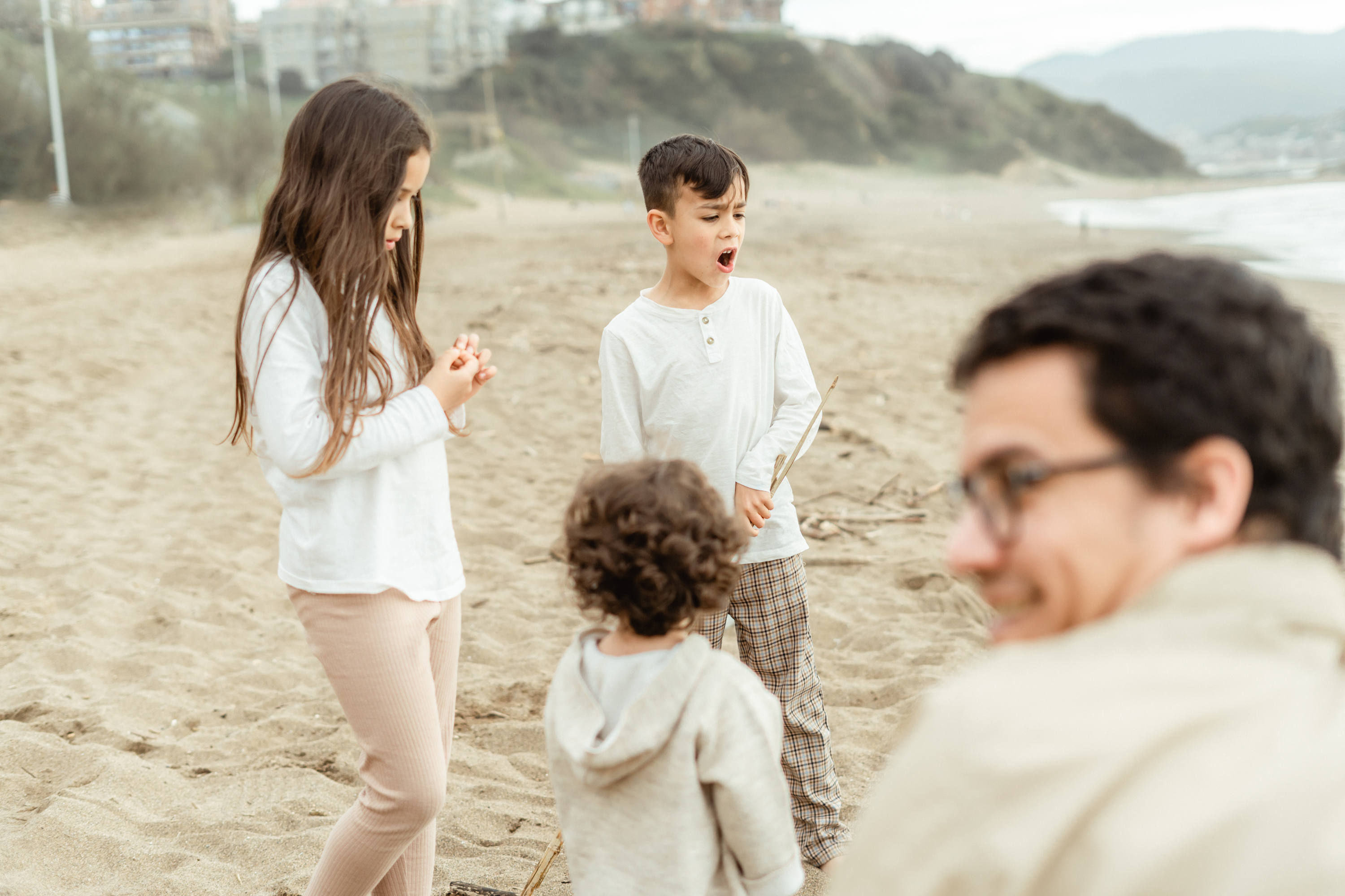 Mis sesiones son al aire libre o en casa, sin poses, sin estudio. El País Vasco tiene paisajes increíbles para fotografiar familias: la costa, el monte, los parques, los bosques. Cada sesión encuentra su propio escenario.